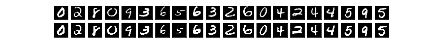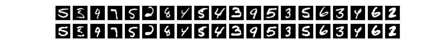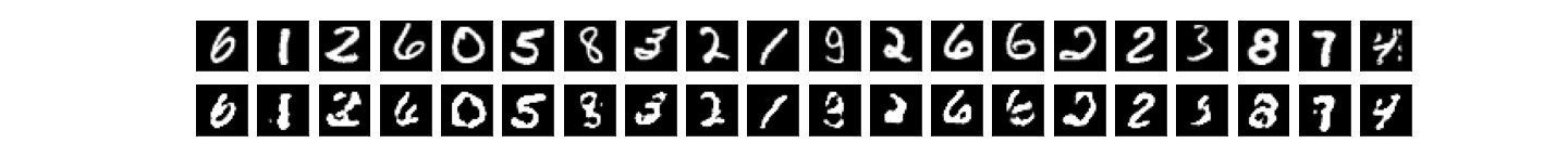 However, this conclusion is just eye-balled based on the plots leveling off. The y-axis here is loss, which is related to pixel distance between original and reconstruction, but it's actually hard to know what a loss of ~300 really means. Also, this loss is not straightforward pixel distance, since it's standard practice to re-scale and normalize MNIST images to help the neural networks: